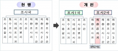 이번 개편은 최근 외환규제 완화, FTA 확대로 인한 관세율 하락 등으로 무역을 이용한 재산도피, 자금세탁 등 재산·금융범죄가 지속적으로 증가하고 있어, 효과적 대응을 위해서는 외환조사 전담조직이 필요하다는 판단에 따른 것이다.