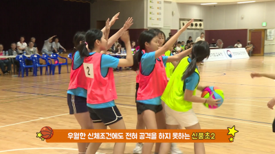 영상 제목은‘함께 놀구, 같이 농구’로 지난 7월 6일 도교육청과 한국여자농구연맹이 개최한 농구 초등스포츠클럽 페스티벌에서 열린 옥정초등학교와 신풍초등학교 농구팀의 개막전 경기 중계를 담고 있다.