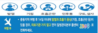 송탄보건소 관계자는 “중동지역 여행 후 14일 이내에 발열과 기침 등 호흡기 증상이 있다면 의료기관 방문하기 전 반드시 질병관리 본부 콜센터로 신고하기 바란다”며, “질병관리본부·경기도·보건소는 해외유입 감염병 신속대응반을 24시간 운영하여 감염병 예방대책에 최선을 다하고 있다”고 밝혔다.