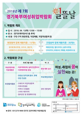 [충청뉴스큐] 경기도와 경기도일자리재단은 오는 13일 오후 1시부터 경기도청 북부청사 별관 1층 로비와 야외공간에서 여성취업박람회 ‘일뜰날’을 개최한다고 밝혔다.