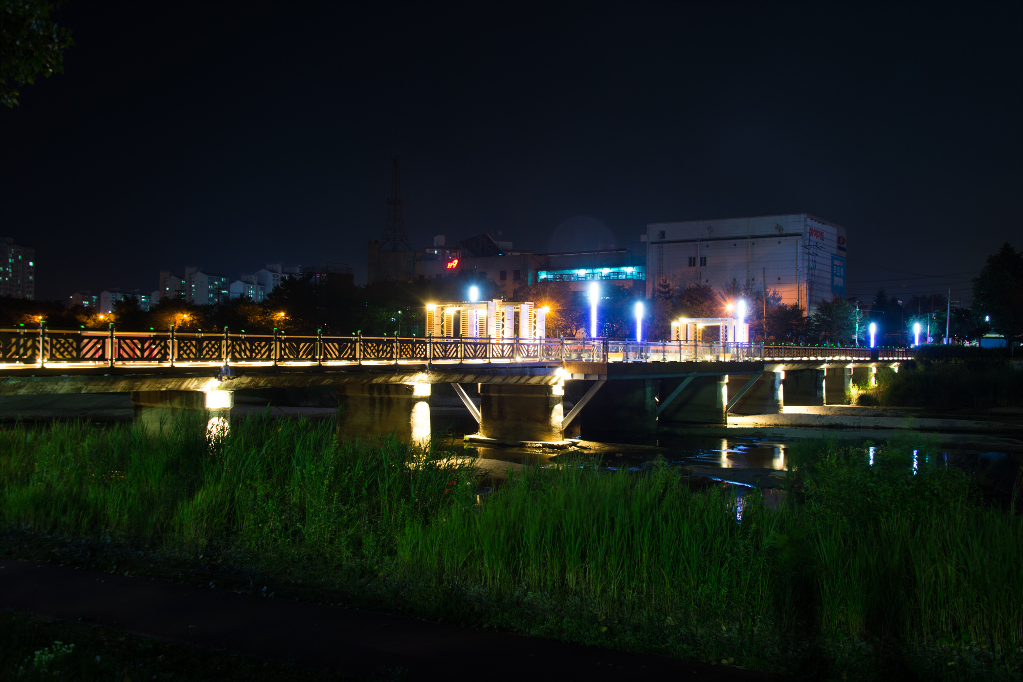 [충청뉴스큐]증평군은 보강천 송산목교 리모델링 공사를 통해 보강천의 아름다운 야경에 방점을 찍었다.