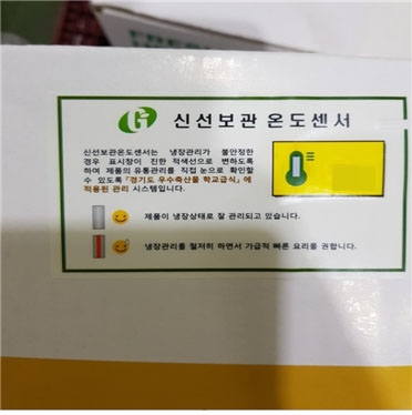 이번에 도입될 ‘신선보관온도센서’는 비정상온도에 노출된 시간을 누적시켜 직접 확인할 수 있는 일종의 온도노출 지시계다.