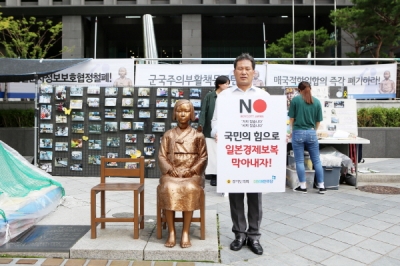 이날 30도가 넘는 폭염 속에서도 ‘국민의 힘으로 일본경제보복 막아내자’ 라는 피켓을 들고 시위에 나선 양경석 의원은 “일본의 경제보복 행위는 자국 내 정치적 이해관계를 위해 우리나라를 부당하게 압박하고 있는 것.” 이라며 “이럴 때 일수록 국론을 결집하고 굳은 의지로 국민 모두가 함께 이 위기를 이겨나가는 것이 중요하다”고 말했다.