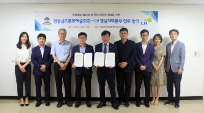 [충청뉴스큐] 경상남도문화예술회관과 한국토지주택공사 경남지역본부가 지난 2일 오전 11시 문예회관에서 문화예술 활성화 및 문화 향유권 확대를 위한 업무협약을 진행했다.
