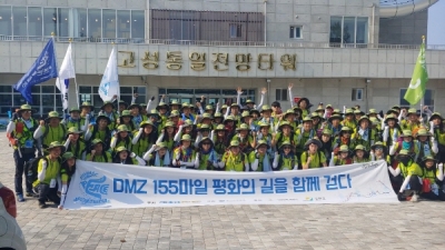 [충청뉴스큐] DMZ 일원을 걸으며 도전 정신과 인내심을 함양하고 평화통일을 염원하는 ‘DMZ 155마일 걷기’ 행사가 5일 오전 파주 임진각에서 열린 출정식을 시작으로 기나긴 여정의 첫걸음을 내딛었다.