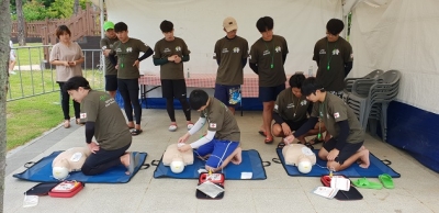 본 교육은 위탁업체 책임자가 강사로 나서 물놀이장에서 주로 발생할 수 있는 안전사고 유형을 비롯해 인명구조, 심폐소생술, 자동제세동기 작동법 등 응급상환 대처법을 사례와 시범을 통해 자세히 교육했다.