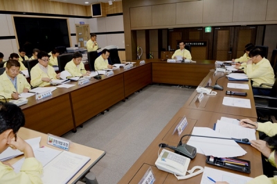 이날 회의는 태풍의 진로와 영향 범위 등 기상 상황과 13개 협업부서별 임무와 점검 사항 등을 논의하고 태풍 피해 최소화를 위한 대책 마련에 집중됐다.