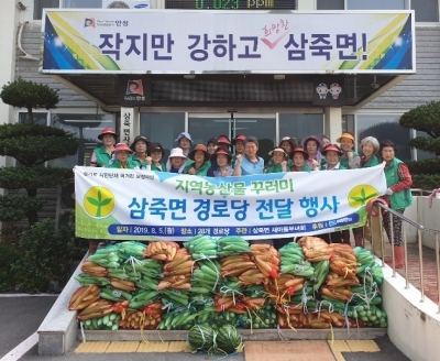 [충청뉴스큐] 안성시 삼죽면 새마을 부녀회는 지난 5일 경기도 시민단체 먹거리 보장사업의 일환으로 지역농산물인 옥수수, 수박 등을 관내 경로당 28개소에 전달했다.