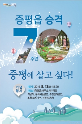 [충청뉴스큐] 증평읍이 오는 13일 오후 6시 30분 읍사무소 앞 광장에 주민과 함께 읍 승격 70주년을 축하하는 자리를 마련한다.