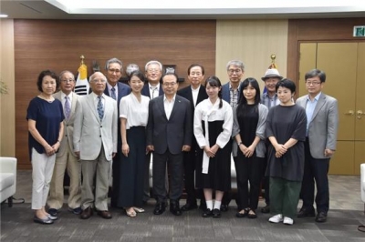 오거돈 시장은 “최근 아베 정권의 조치로 양국의 관계가 악화돼 일본 내 한국인들이 피해가 크지 않은지 상당히 우려가 깊다”며 “이럴 때 일수록 민간 교류가 활발히 되어야 한다. 문화나 체육, 경제 분야 등 민간 교류를 앞으로도 계속 열어두는 것이 필요하다. 그런 의미에서 여러분들의 귀한 걸음이 참 기쁘다”라고 방문단에게 환영의 인사를 전했다.