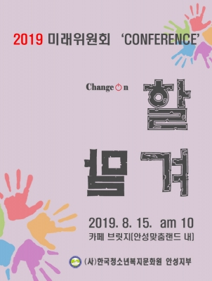 [충청뉴스큐] 한국청소년복지문화원 안성지부는 오는 15일 오전 10시 안성맞춤랜드 內 카페 브릿지에서 2019 미래위원회 컨퍼런스“Change on”을 개최한다.