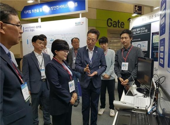 김진숙 행정중심복합도시건설청장은 지난 9일 서울 코엑스에서 열린 ‘2019 스마트 국토엑스포’ 전시장을 방문하여 디지털 트윈, 지하시설물 탐사 등 공간정보와 연결된 국내외 신기술 현황 등을 청취하였다.