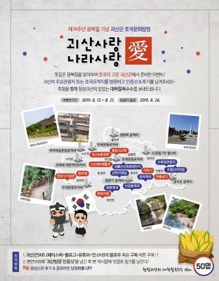 이벤트 기간 중 괴산지역 내 호국유적지나 주요 관광지를 방문한 뒤 군 SNS에 인증샷과 후기를 남기면 50명을 추첨, 괴산대학찰옥수수 1상자를 경품으로 증정한다.