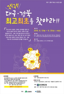 [충청뉴스큐] 대구시와 경북도는 우리 지역의 자랑스러운 문화와 유산을 선정하는 ‘대구·경북 최고최초를 찾아라’ 공모전을 진행하고 있다.