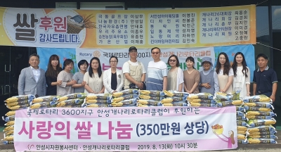 [충청뉴스큐] 국제로타리3600지구 안성개나리로타리클럽은 지난 13일 안성시자원봉사센터에 ‘사랑의 쌀’을 기부했다.
