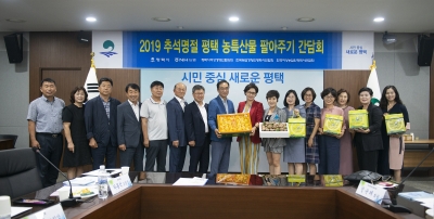 [충청뉴스큐] 평택시는 지난 13일 정장선 평택시장을 비롯 최연희 평택 여성 경영인협의회 회장, 회원, 농업관계자 등이 참석한 가운데 ‘2019년 추석맞이 평택농특산물 팔아주기를 위한 간담회’를 개최했다.