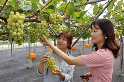 하우스 포도는 이미 대부분의 수확을 끝난 상태로, 본격적인 노지 출하기를 맞아 캠벨, 샤인머스켓 등이 수확을 앞두고 있다.