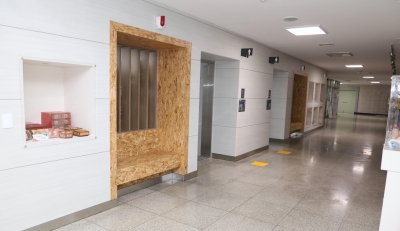당초 이곳을 차지하던 관내 중소기업 우수상품 전시장은 로비와 구내식당 방향 벽면으로 재배치 됐다. 함께 있던 공기정화식물도 출구 양측 벽면으로 이동해 로비 중앙공간을 넓게 확보할 수 있었다.