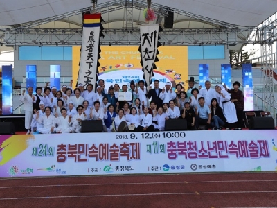 한편, 도내 각 지역에서 전해오는 민속예술을 발굴·전승 보존하여 도민의 정체성과 자긍심을 고취시키기 위하여 해마다 열리는 충북민속예술축제는 충북의 새로운 민속문화의 발전을 도모하고 도민화합의 장이 되고 있다.