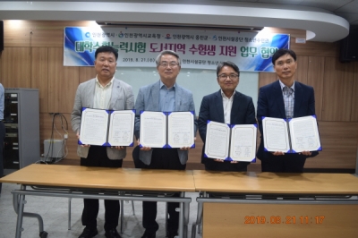 [충청뉴스큐] 인천광역시교육청은 21일 인천시설공단 청소년수련관에서 인천시청, 옹진군청, 청소년수련관과 ‘대학수학능력시험 도서지역 수험생 지원’을 위한 업무 협약식을 가졌다.