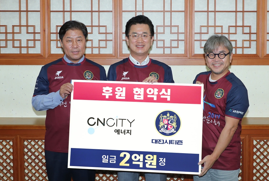 대전시는 대전시티즌이 21일 오후 4시 대전근현대사전시관(구 충남도청) 응접실에서 씨앤씨티(CNCITY)에너지로부터 발전후원금 2억 원을 전달받았다고 밝혔다. 이날 전달식에는 구단주인 허태정 대전시장과 대전시티즌 최용규 대표이사가 참석했으며, 씨앤씨티에너지에서는 황인규 대표이사가 참석했다. 씨앤씨티에너지 황인규 대표이사는 “지역을 대표하고, 대전 시민의 기본적인 생활에 필요한 에너지를 지원하는 기업으로서 대전시티즌을 후원하는 것은 당연한 일”이라며, “프로축구가 더욱 활성화돼 많은 분들의 사랑을 받았으면 한다”며 발전후원금 2억 원을 전달했다. 허태정 시장은 “어려운 여건 속에도, 꾸준히 대전시티즌을 응원해 주셔서 진심으로 감사드린다”며 “앞으로도 대전시티즌에 대한 지속적인 관심을 가져 달라”고 당부했다. 최용규 대전시티즌 대표이사도 “지역 대표기업인 씨앤씨티에너지 임직원 여러분들의 관심과 사랑에 감사드린다”며 “앞으로 씨앤씨티에너지와 대전시티즌의 가치가 동반 상승할 수 있도록 최선을 다하겠다”는 말로 감사의 뜻을 전했다. 한편, 씨앤씨티에너지는 문화, 체육 분야 사회공헌 활동의 일환으로 2003년부터 꾸준히 대전 시티즌을 응원하고 있으며 이번 후원금을 포함하여 현재까지 모두 35억 원을 후원했다.