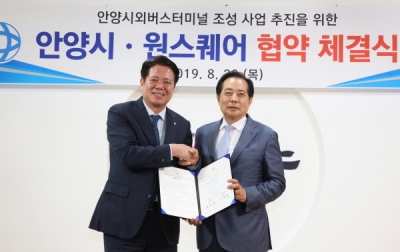 이날 협약에 따라 안양시는 건축공사가 재개되는 원스퀘어의 1층을 매입, 198㎡규모의 시외버스터미널 매표소를 겸한 대합실로 조성할 계획이다.