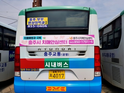 시는 오는 26일부터 ‘치매예방과 극복, 충주시치매안심센터와 함께’라는 슬로건으로 충주 시내를 경유하는 시내버스 후면과 이정표 등에 문구를 부착하여 홍보한다고 밝혔다.