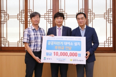 이번 ㈜한국알박으로부터 전달된 후원금은 지역사회 사회공헌 후원기부금으로 사회소외계층의 일자리 창출 및 시민건강증진·여가생활 지원의 일환으로 공공자전거 대여소 설치에 사용된다.