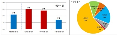 명절에는 온 가족이 모이는 부모님 댁 등에서 한꺼번에 음식을 장만하는 점을 고려할 때, 화재 건수가 높다고 볼 수 있다.