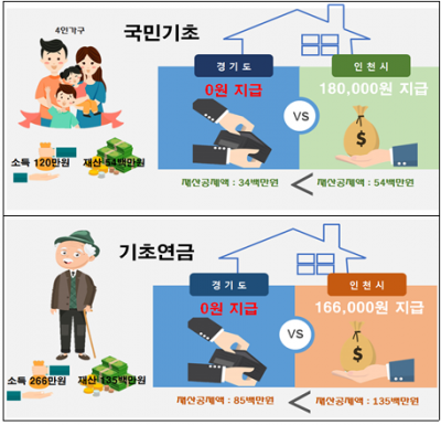 비슷한 수준의 경제력을 갖췄더라도, 대도시에 거주할수록 기본재산액 공제가 커져 대상자로 선정될 확률이 높아진다. 공제기준 상 ‘대도시’에 포함되는 부산, 대구, 대전, 울산, 인천 등 ‘6대 광역시’보다 실제 전세가격이 비싼 경기도가 ‘중소도시’에 포함되면서 무려 13만 명에 달하는 도민들이 복지대상자로 선정되지 못하면서 ‘복지 역차별’을 받고 있다.