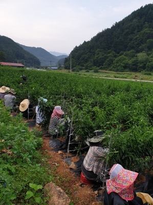 [충청뉴스큐] 지난 24일 단양군 지역경제과 직원들이 가곡면 여천리를 찾아 ‘생산적 일손봉사’를 펼치며 일손 부족으로 힘들어하는 고추 농가에 단비가 됐다.