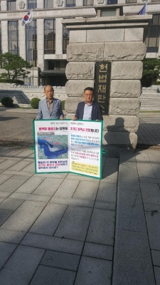 [충청뉴스큐] 평택항 수호 범시민 대책위 임원진들이 대법원과 헌법재판소 앞에서 1인 피켓시위를 전개한다.