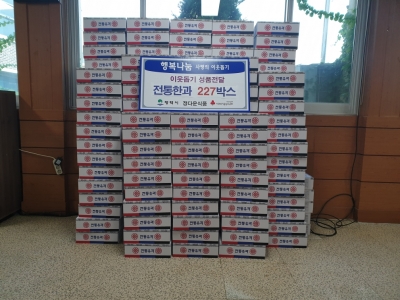 [충청뉴스큐] 평택시 진위면 은산리 소재 ㈜정다운 식품은 지난 28일 추석을 맞아 저소득 어르신들에게 전통한과 227박스를 기부했다.