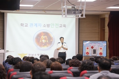 이번 교육은 지난 2017년 충북 제천 스포츠센터 화재, 올해 서울 은명초등학교 화재 등과 같이 자칫 대형 화재로 확대될 수 있는 지상층을 주차장 등 용도로 활용하기 위해 기둥만 시설한 필로티 구조의 학교 관계자 300여 명을 대상으로 실제 화재 상황에서의 신속하고 능동적인 대처 능력 함양을 위해 이뤄졌다.