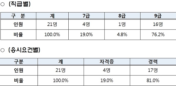 직급별 합격인원은 7급 4명, 8급 1명, 9급 16명이며, 일반행정, 전산개발, 정보보호, 관세, 방송통신관련 특허심사 등 다양한 분야에 임용될 예정이다.