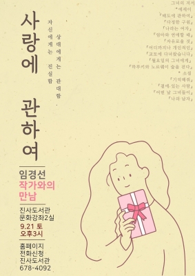 이날 강연에서 임 작가는 삶의 전반을 아우르는 사랑에 관한 이야기를 주제로, 최근에 나온 에세이집 ‘다정한 구원’에서 이야기하는 우리의 가족이야기를 함께 강연할 예정이다.