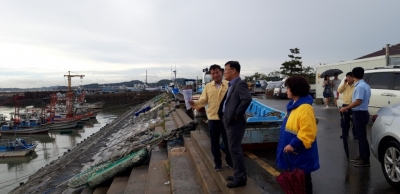 국가어항과 지방어항 등 10개의 어항을 보유한 시는 즉각‘수산시설 비상대책 상황실’을 가동했으며, 박덕순 부시장 주재 수협, 어촌계 등과 합동으로 5일 오후 5시 궁평항 현장 점검을 실시했다.
