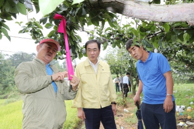 [충청뉴스큐] 정장선 평택시장이 지난 9일, 태풍 ‘링링’으로 피해를 입은 오성면 숙성리 배 낙과 피해 농가를 찾아 피해 현황을 살피고 애로사항을 청취했다.