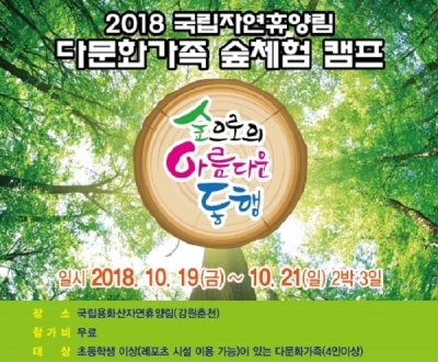 [충청뉴스큐] 산림청 국립자연휴양림관리소는 강원도 춘천 용화산자연휴양림에서 열리는 ‘2018 다문화가족 숲체험 캠프’ 참여자를 오는 14일까지 모집한다고 3일 밝혔다.