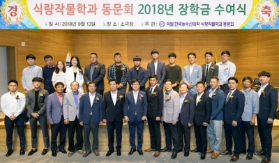 이날 행사에서 식량작물학과 3학년 신웅희 학생을 비롯해 졸업을 앞둔 3학년 재학생 5명이 각각 100만원의 장학금을 받았고, 장학금 수여자와 졸업생 간 멘토·멘티 결연 행사를 진행했다.