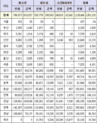 평균 수령액은 1인당 932천원으로 직불금별로는 쌀 직불금 1,039천원, 밭 직불금 321천원, 조건불리 직불금 311천원이다.