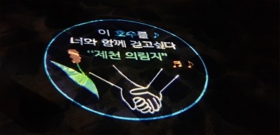 [충청뉴스큐] 제천시는 유동인구가 많은 시내 지역을 비롯한 의림지 주변의 관광지 등에 길거리 바닥에 비추는 “로고라이트 조명”을 설치하여 이색 볼거리를 제공하고 있다.