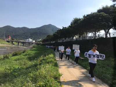 이어진 2부 행사에서는 치매극복선도대학으로 지정된 중원대학교 치매파트너와 함께 ‘치매 애 희망을 나누다’라는 슬로건을 걸고, 동진천변을 행진하면서 치매에 대한 고통을 함께 나눠 치매를 극복해 나가자는 캠페인을 펼쳤다.