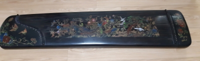 ‘고쟁’은 중국의 전통적 악기로 21현이며 상면에는 봉황을 비롯한 각종 새를, 양쪽 끝 면에는 호접문, 모란문을 금니와 채색으로 장식했다.