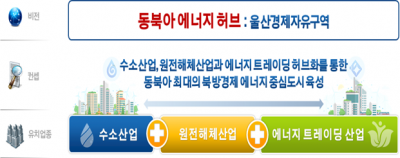 울산경제자유구역 지정 계획은 ‘동북아 에너지 허브 울산경제자유구역’을 ‘비전’으로 하고 있으며 유치업종은 수소산업, 원전해체산업, 에너지 트레이딩산업 등이다
