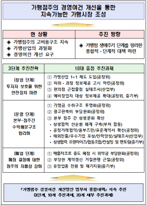 이를 위해 관계부처 간 긴밀히 협조하고, 가맹본사·점주 및 협회 등 정책수요자와 소통하여 현장의 목소리를 청취할 계획이다.