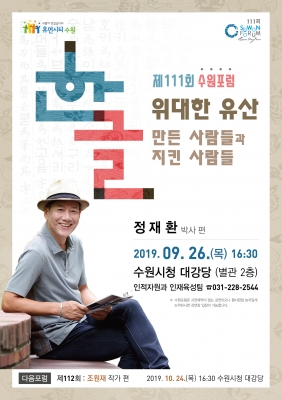 [충청뉴스큐] 수원시가 오는 26일 오후 4시 30분 시청 대강당에서 ‘한글, 위대한 유산-만든 사람들과 지킨 사람들’을 주제로 제111번째 수원포럼을 연다. 정재환 박사가 강연한다.