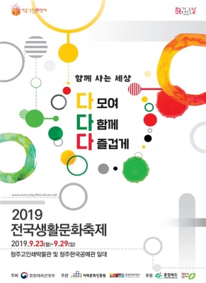 [충청뉴스큐] 문화체육관광부가 주최하고 지역문화진흥원과 충북문화재단이 공동으로 주관하는 ‘2019 전국생활문화축제’가 23일부터 오는 29일까지 충북 청주고인쇄박물관과 청주한국공예관 일대에서 열린다.