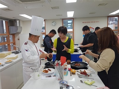이들은 매대 운영자 10명과 함께 매주 월, 금요일 오후 2시부터 5시까지 위생, 청결, 서비스, 경영관리 지도, 레시피 개발 등의 교육을 통한 꼬치 기술개발 전수에 구슬땀을 흘리고 있다.