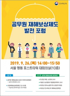 인사혁신처는 ‘공무원 재해보상법’ 시행 1년을 맞아 ‘공무원 재해보상제도 발전 포럼’을 26일 서울 중구 포스트타워에서 개최한다고 지난 25일 밝혔다.